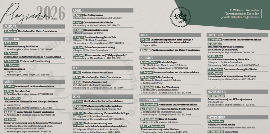 Am 6. Januar 2026 (Hl. Drei Könige) ist das Naturfreundehaus von 13 bis 18 Uhr geöffnet.