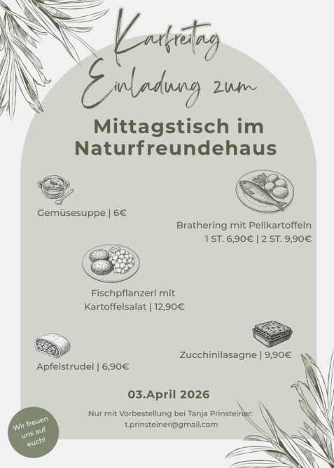 Hinweis für Samstag, 7. März 2026: Aufgrund des Starkbierfestes ist das Naturfreundehaus nur bis 17 Uhr geöffnet - danach geschlossene Gesellschaft.